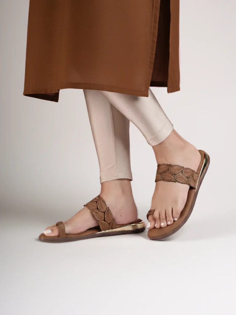Today’s trend is a mix of comfort and style. Platform sandals, pastel flats, chunky sneakers, and simple strappy sandals are very popular, perfect for everyday and festive wear.